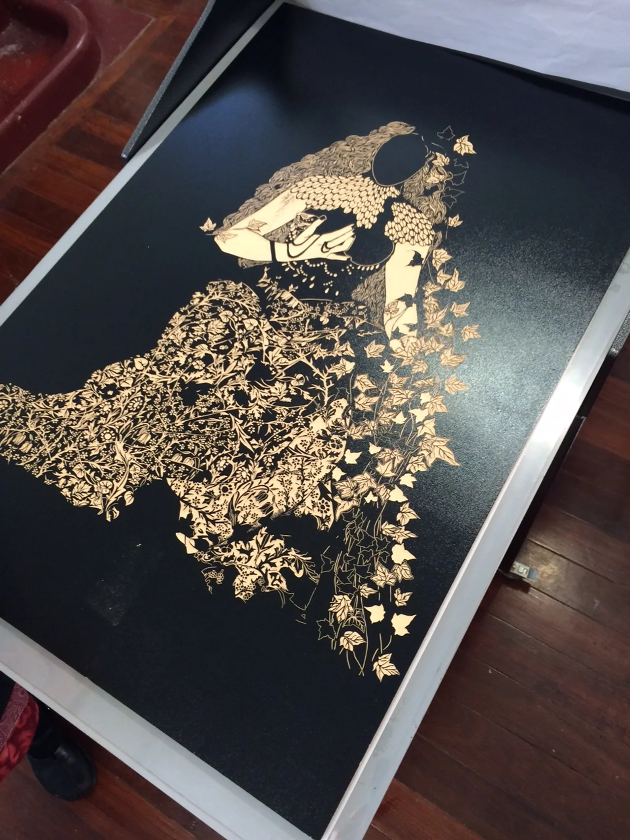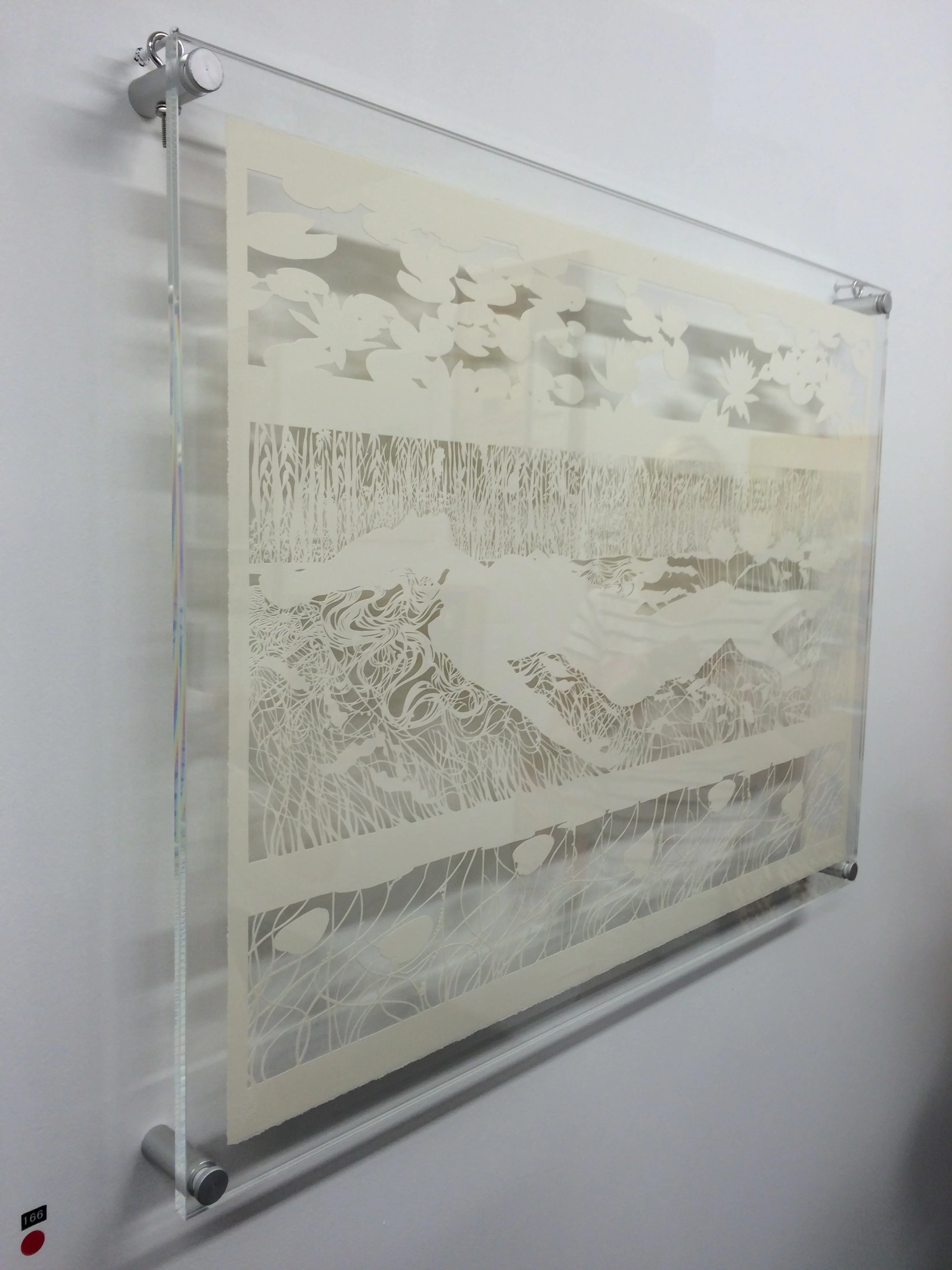 This is the Ophelia paper cut before it got it's finishing touches. Namely a top & bottom border for her watery tomb. The completed piece is now being exhibited at Form Public Salon 2015. She's now floating gracefully in a very sexy acrylic frame to be photographed in situ and posted soon.