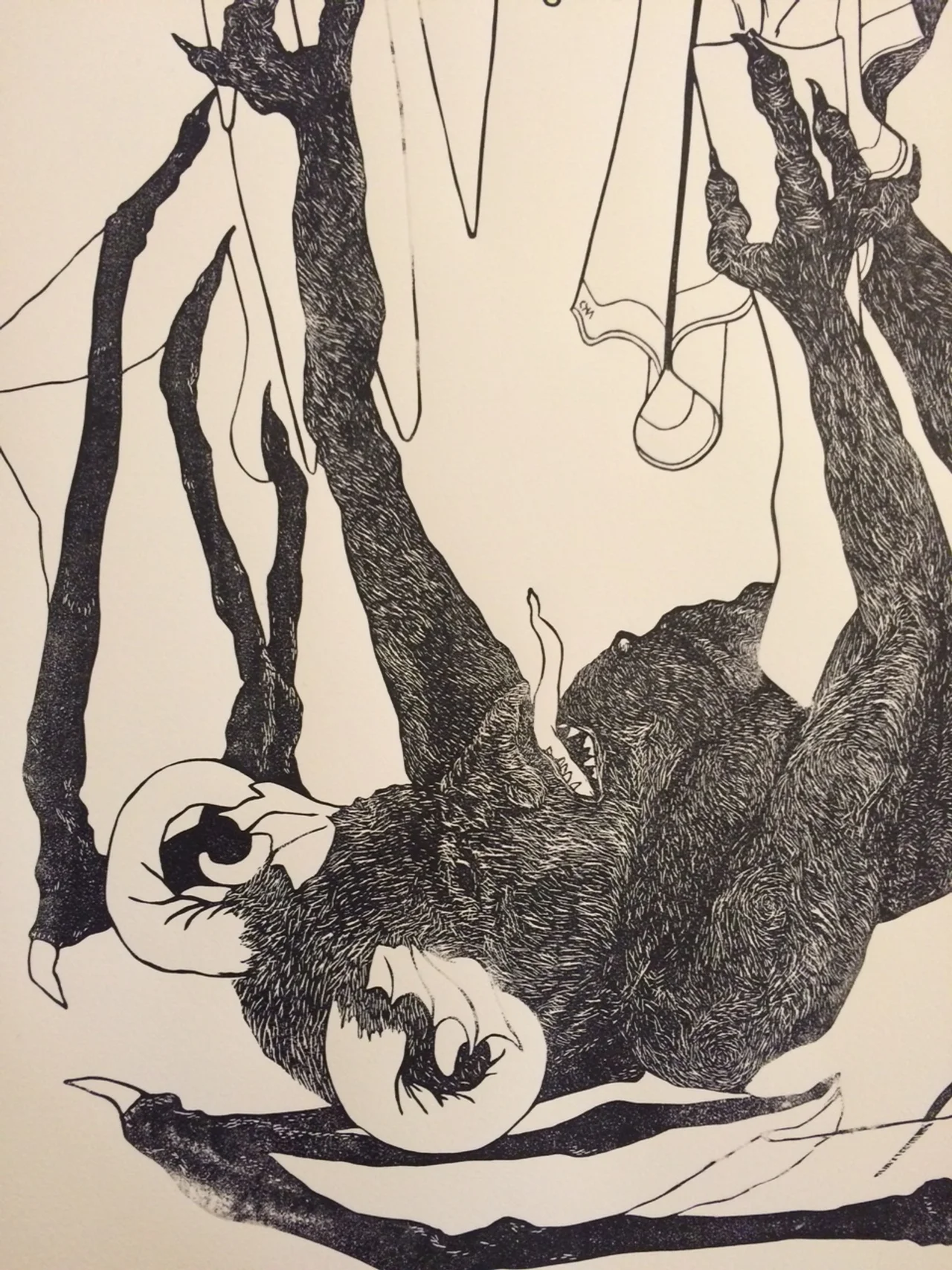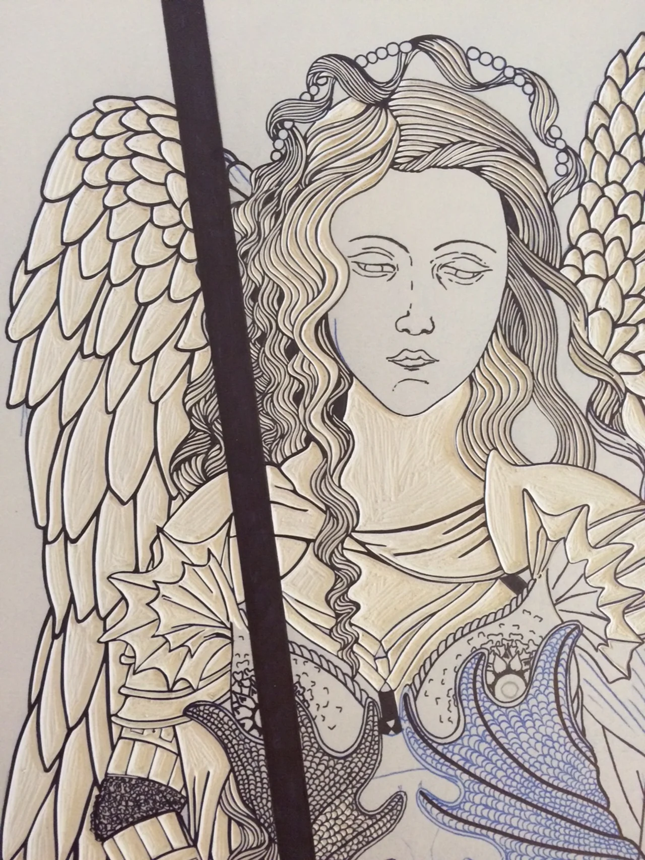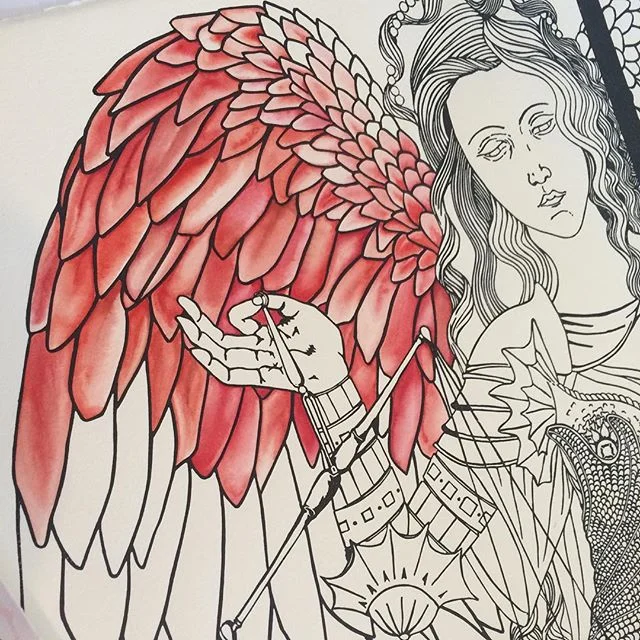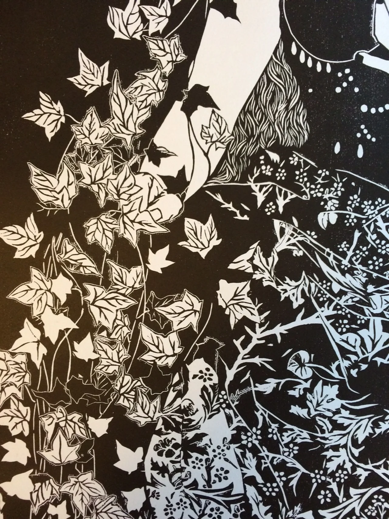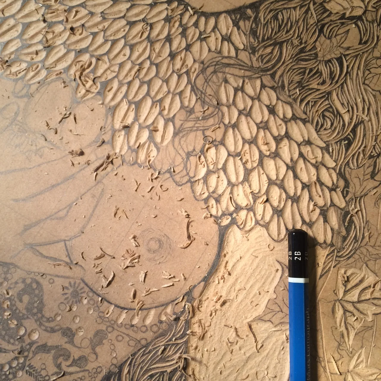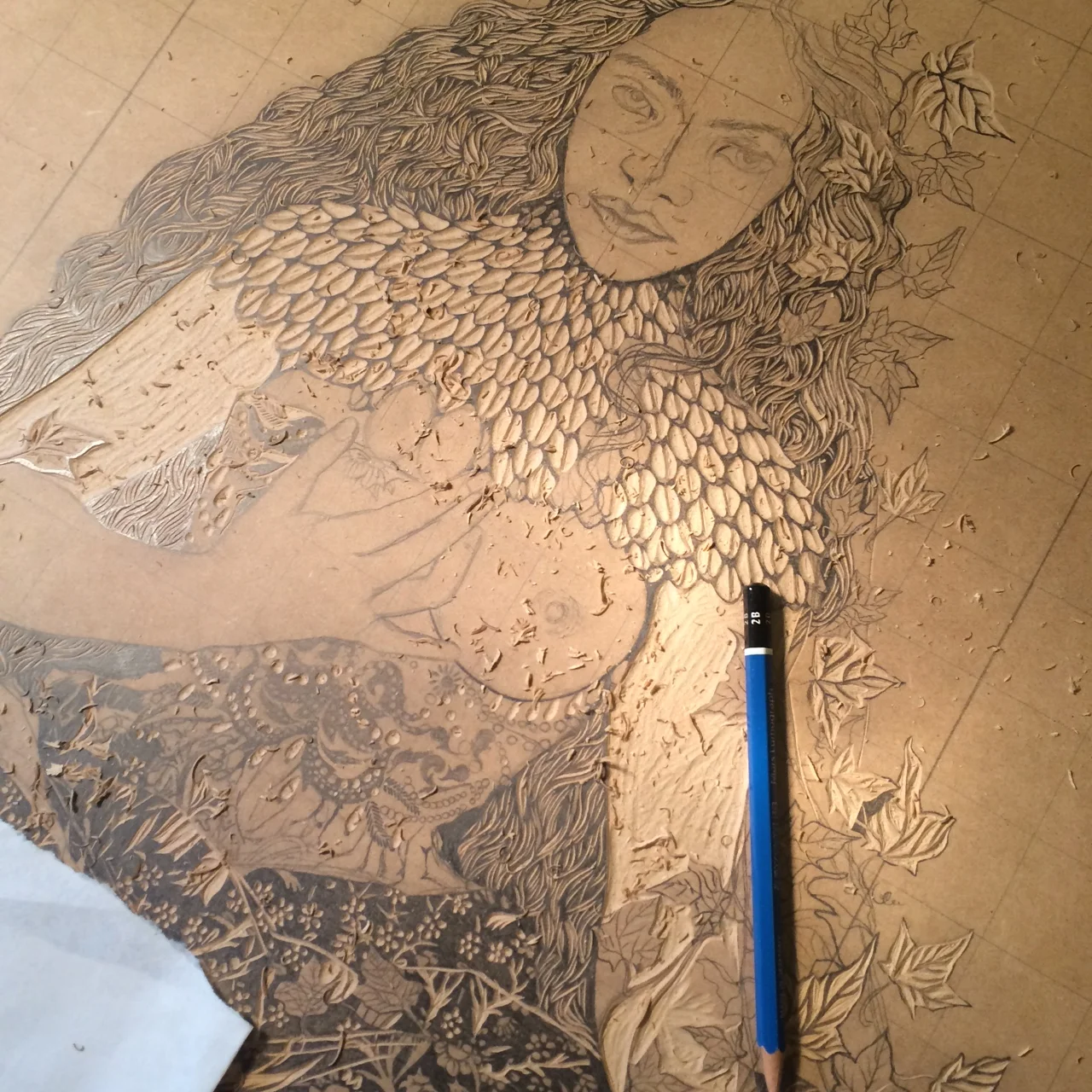 Ok. So this one's big. Lino measures: 1160mm x 700mm (46" x 28") I've accepted that large scale is where it's at for me. This piece is inspired (pretty obviously I would assume) by Archangel Michael, with a twist. I've always had a fascination with religious art; the drama and opulence. Did I mention colour?! I'll be hand colouring these prints.