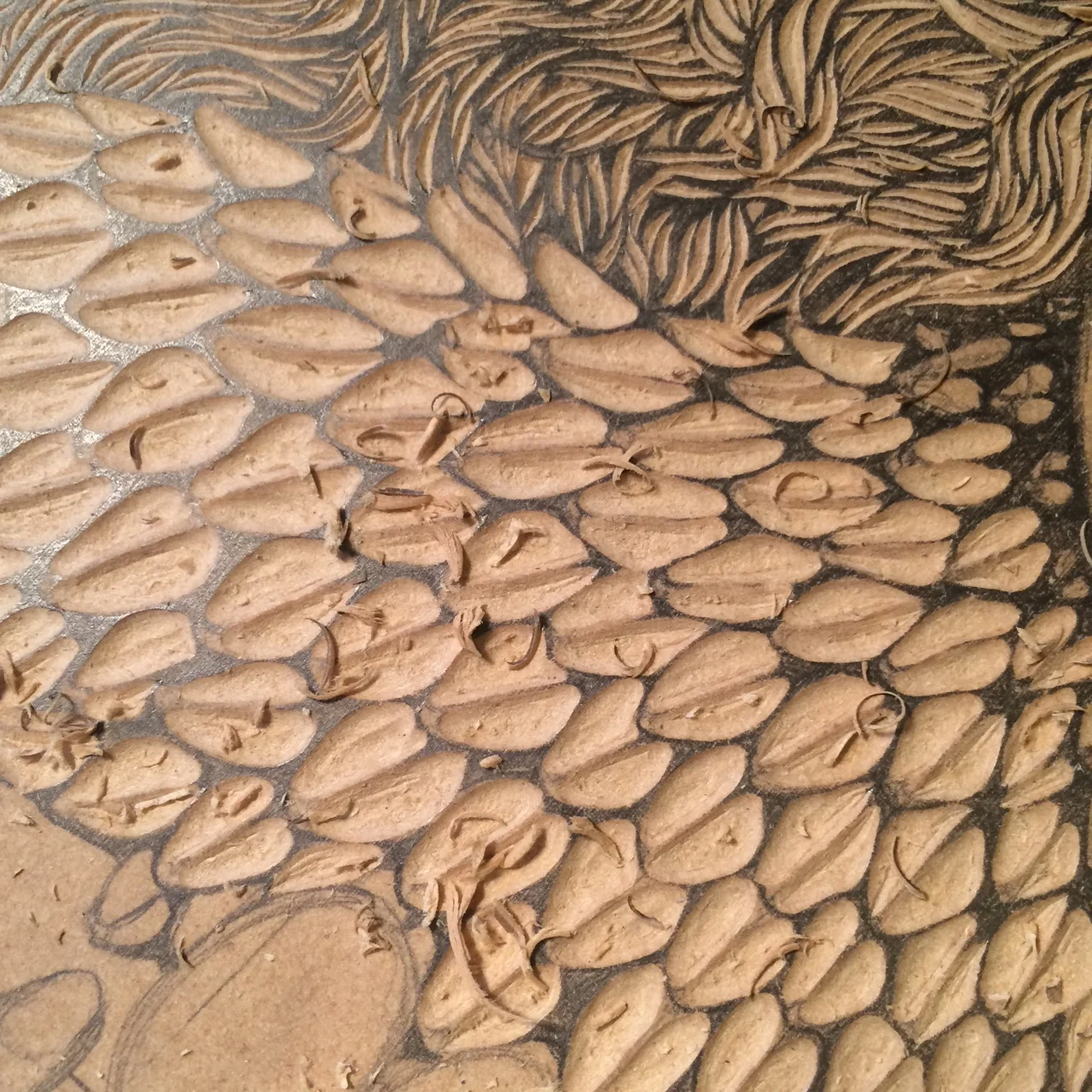 So, I had this great idea to cut a wood block using MDF. I waxed lyrical to friends family and anyone else who cared to listen( or didn't) about the rawness and lovely physicality of each line that was gouged into the block, how it had more soul, feeling, life! I felt in the physicality of each line there was a little more of myself going into it; that THIS would come through in the work. It was so much part of me. Every line counted.