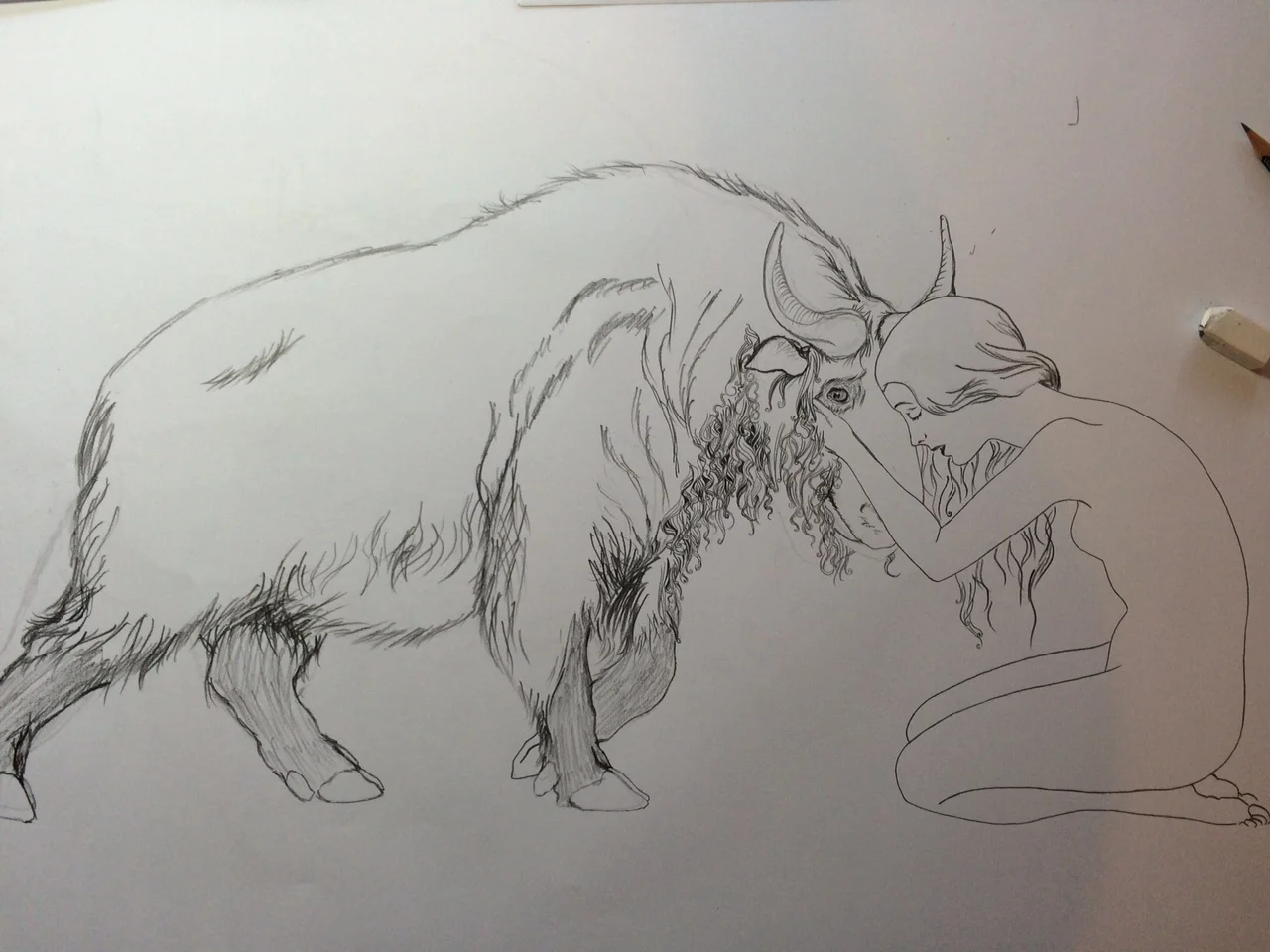 This is an illustration I'm working on for an old Russian folk tale. Working in to Lino again. What a relief! So much easier after MDF. I'd like to try this as a copper plate etching too but that will have to wait for now. Here's the initial sketch that I transferred to the Lino before fleshing it out a bit. Girl's costume and background still to come.