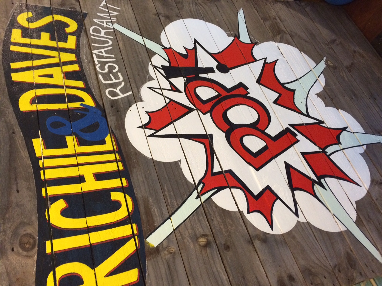A job I squeezed in for my husband and his mate. Surprisingly fun considering I had to turn this around in 24 hours (realistically I only had 8). I've missed painting. It was good to work with a splash of colour. weathered shipping crate and paint of public art past. The boys did my sign proud!