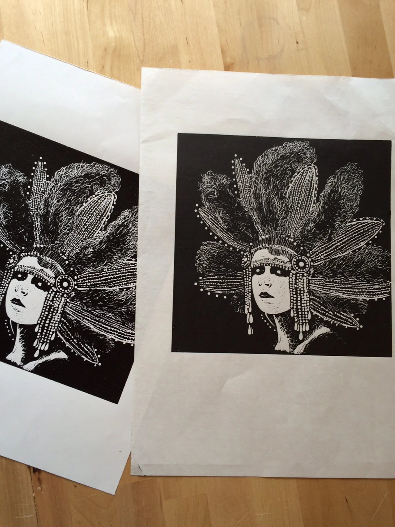 Based on an old photograph I had floating around. I couldn't resist this glamorous gal. So much of this period influences my work. A relatively small lino cut for me (fits A4). Pretty happy with this proof, just going to clean up the face and highlight some more of the plumes. I'l post a finished print soon.