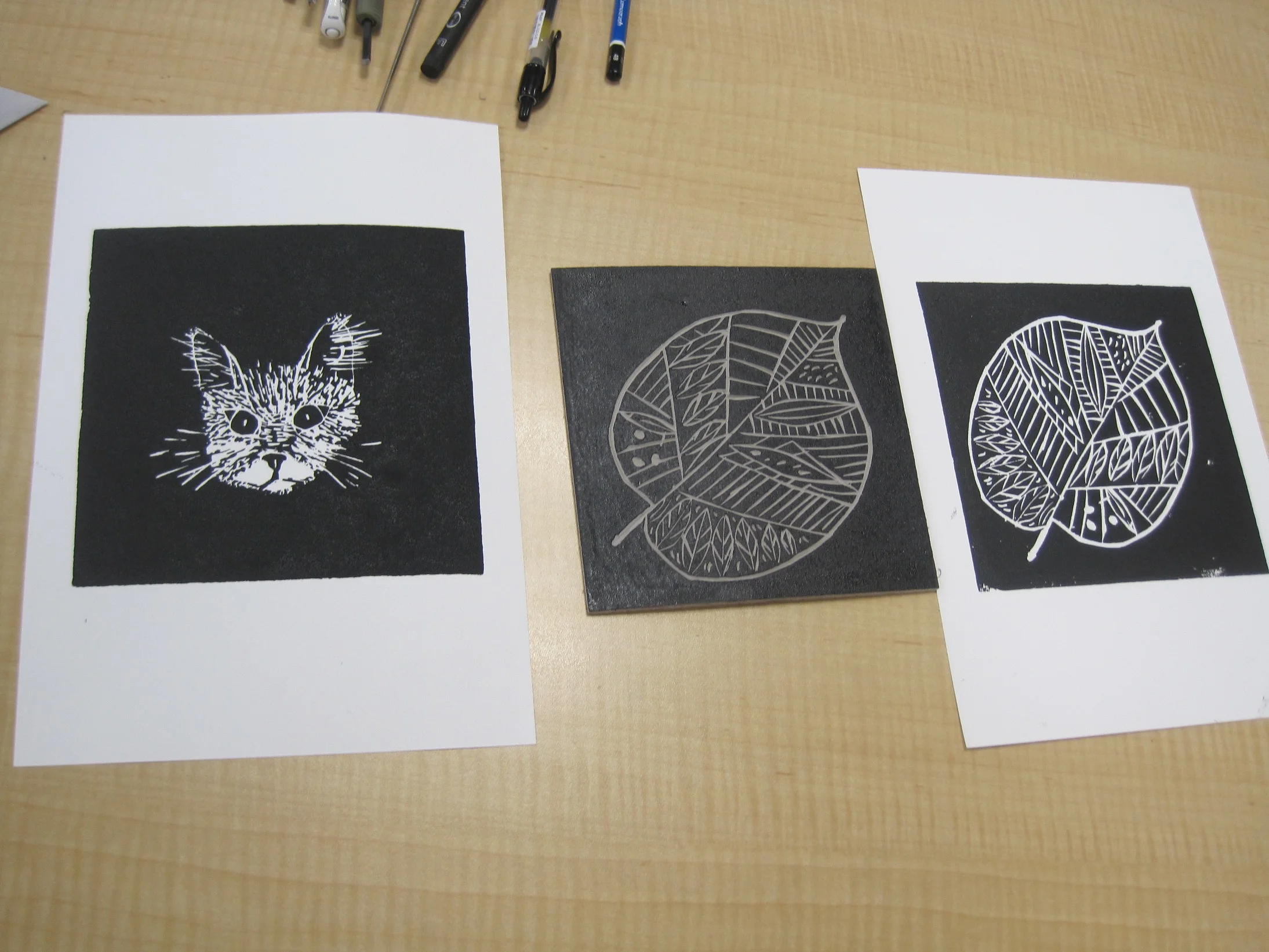 *Please note: Some of these images are "heavily influenced" by existing print makers. This is a study, not work for sale. But the pussy cat is an original (by a 10 year old!).